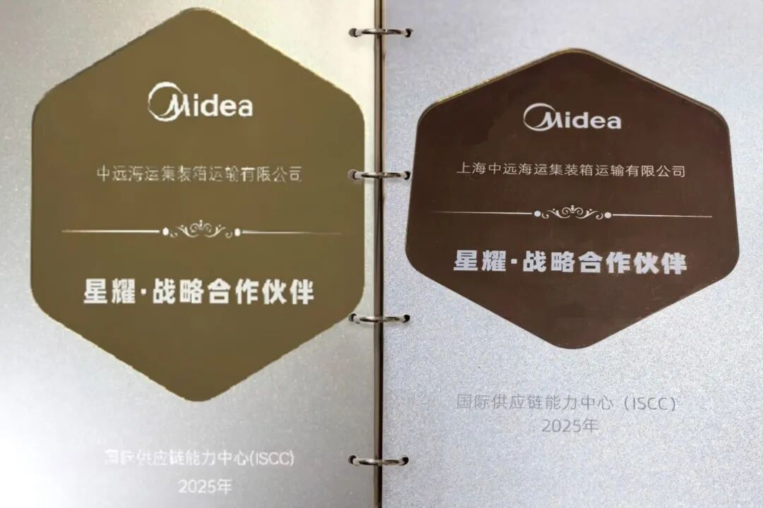 近日,中远海控旗下中远海运集运凭借 2025 年度的卓越表现,在美的集团供应链合作伙伴大会上,从众多供应商中脱颖而出,荣获 “星耀战略合作伙伴” 称号。