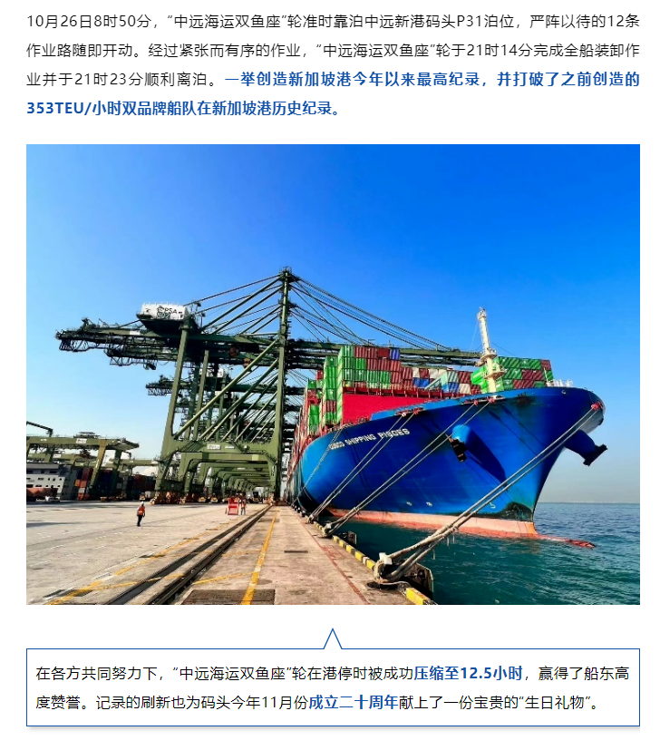 港航协同丨中远海控刷新双品牌船队全球效率纪录!