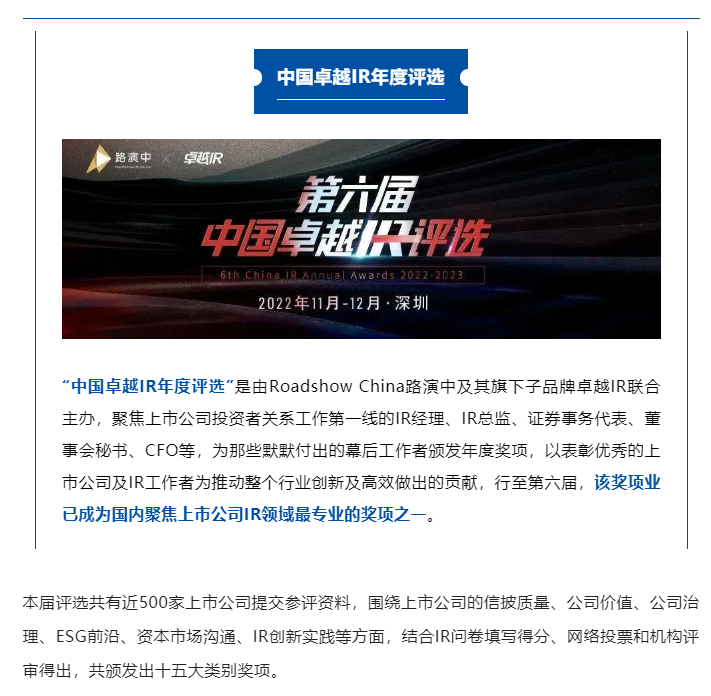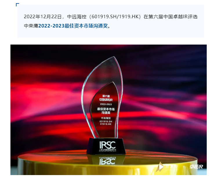 中远海控荣获第六届中国卓越IR评选“2022-2023最佳资本市场沟通奖”